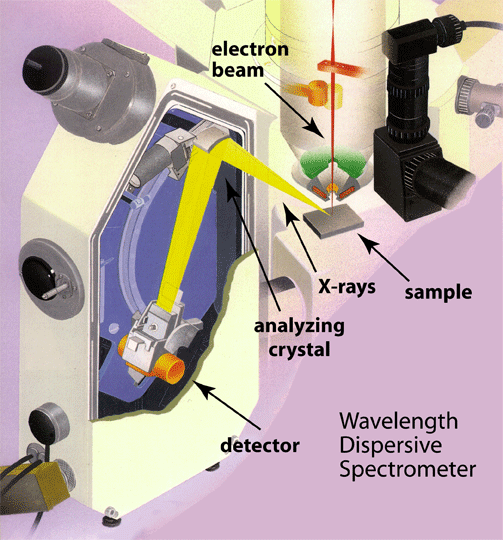 Inner workings of a JEOL wavelength dispersive spectrometer.
