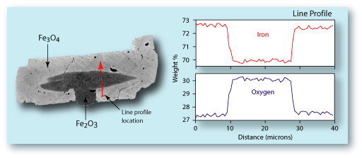 Oxygen (O, Z=8) is a particularly important element in many different systems. In geologic systems it is the most abundant element. In metallurgical systems, oxygen's importance comes from its role in corrosion. Yet for all of its importance, it is arguably the least analyzed of the major elements. The reason for this is the difficulty in getting good results. Most quantitative analyses of oxides do not measure the oxygen abundance directly, but calculate it assuming a fixed stoichiometry for each oxide. This works in most cases, but for some oxides there is not a single fixed oxidation state. The best example of this is iron, which occurs both as Fe2+O and Fe3+2O3.