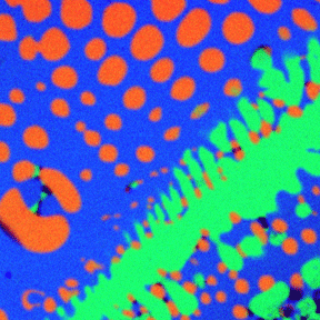 Phase maps can be constructed using a number of different approaches. The easiest is to take each element map and change the the color scheme so that one is displayed only in shades of red, one in shades of green, and one in shades of blue. The maps in Figure 2 are the same as those in Figure 1, but with this new color scheme. |